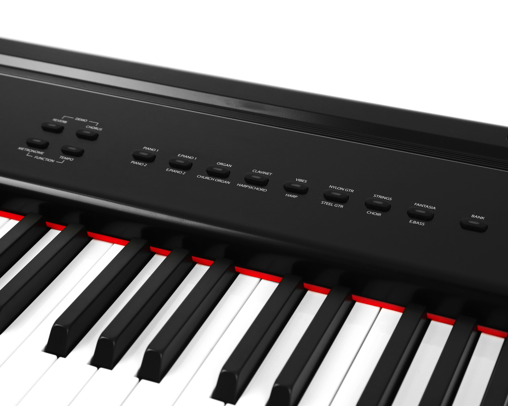 - 16 built-in voices, reverb, chorus, bass & treble EQ