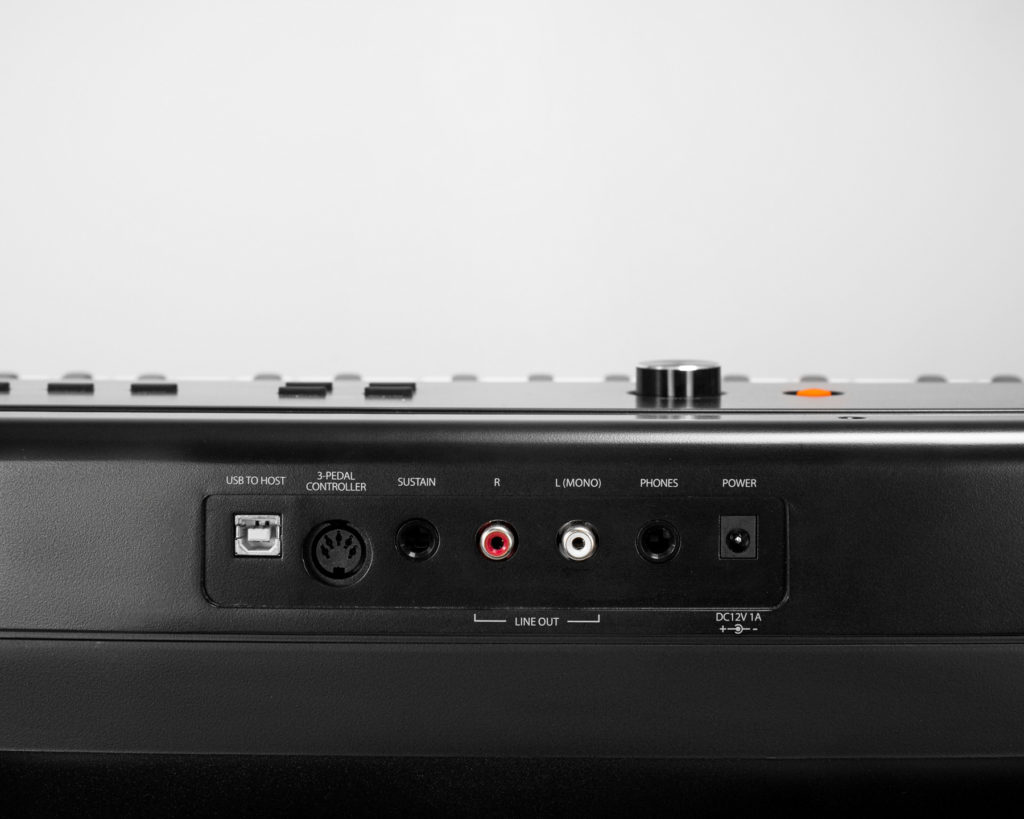 Whether you want to rock out and crank the volume up to 11 or tone it down and practice privately, you can do either with the Artesia Piano. In addition to the Sustain Pedal jack, the Stereo Line Out jacks allow you to plug directly into a speaker system for a bolder sound. You can also connect headphones using a 1/4″ headphone adapter to practice without disturbing others or in private.